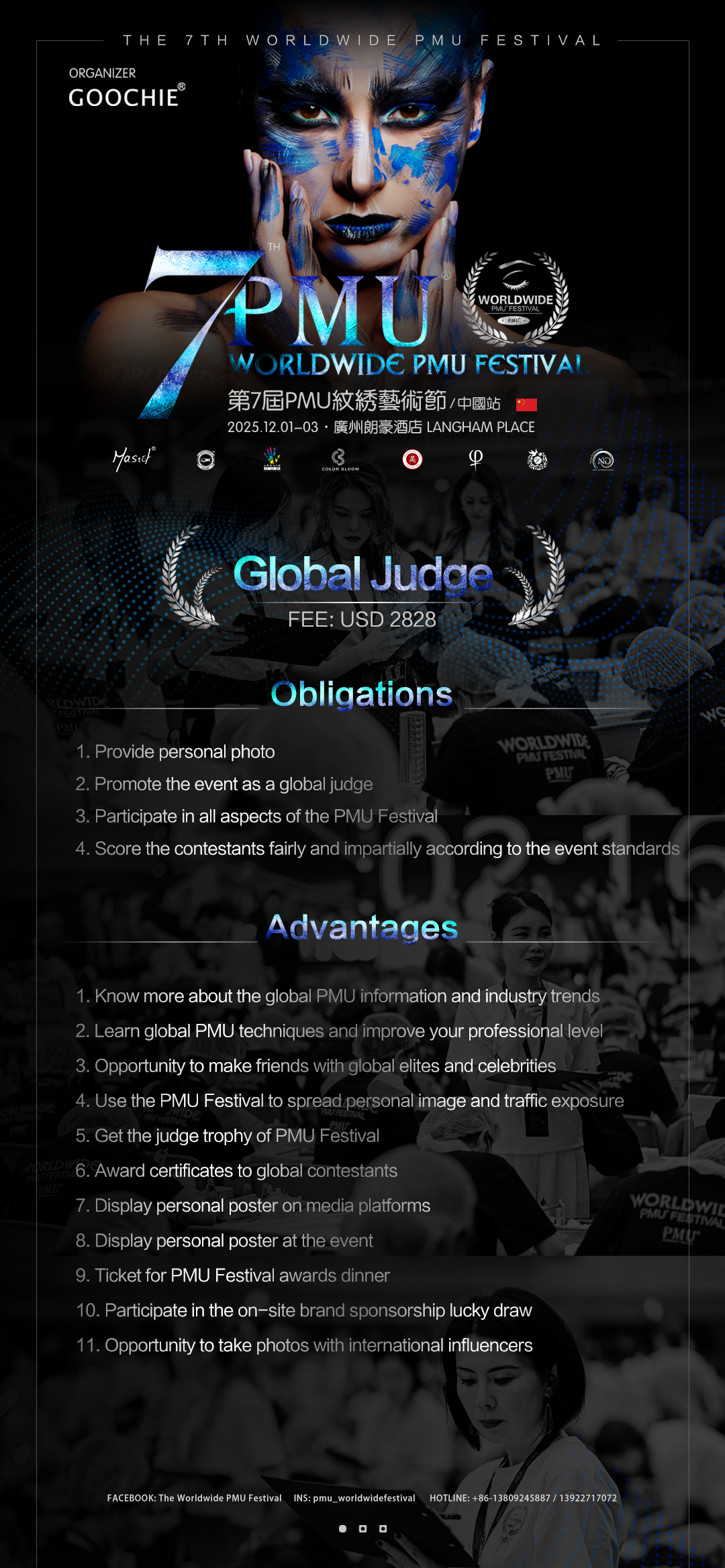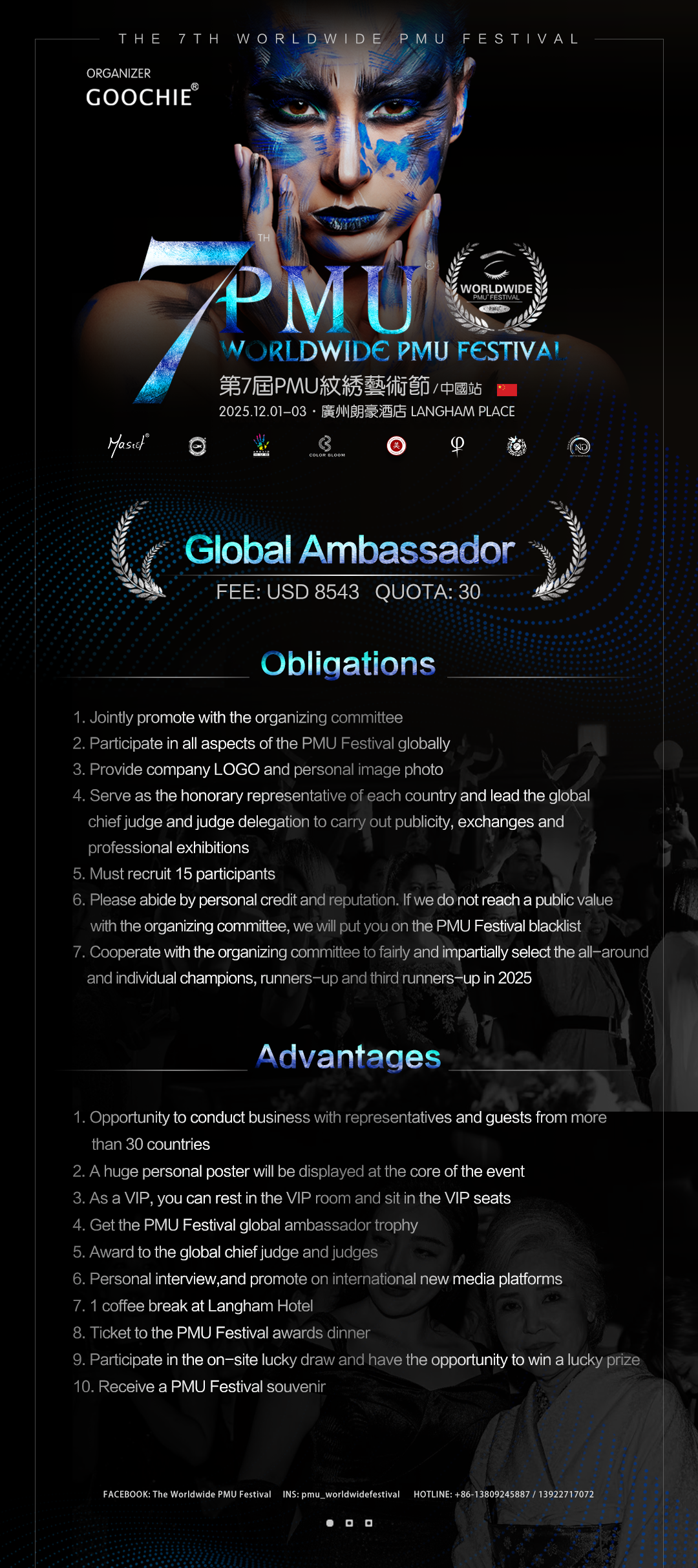 26 May company news The 7th Worldwide PMU Festival Registration Starts 2025-08-07 Posted by PM01 The 7th Worldwide PMU Festival Guangzhou Station Time: 2025.12.01~12.03 Location: Langham Place, 638 Xingang East Road, Haizhu District, Guangzhou, China Contact: 138-0924-5887 / 139-2271-7072 Facebook WhatsApp WhatsApp